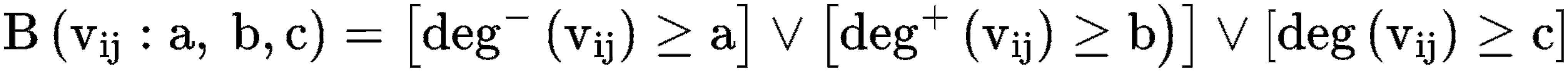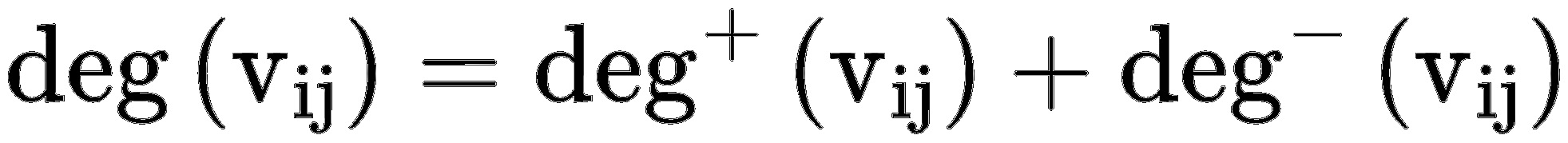The degree of a vertex is the number of edges connected to the vertex. A- superscript on deg refers to the in-degree (directed edges pointed to the vertex) and a + superscript refers to the out-degree (directed edges pointed away from the vertex) |