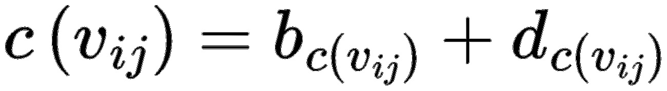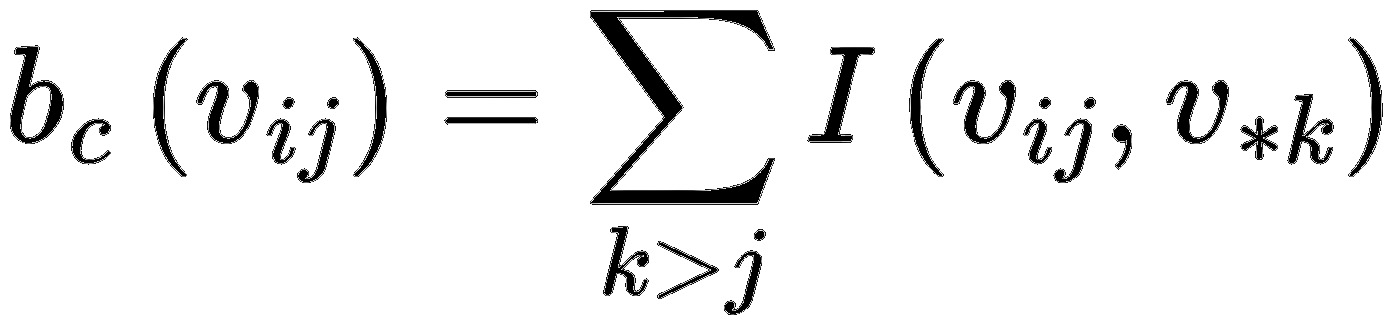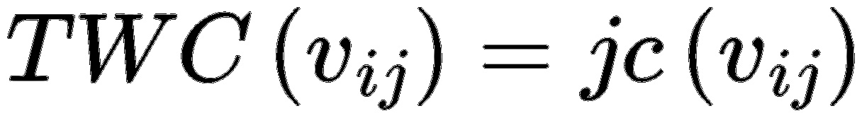 For example, course B's cruciality is 11, because (B) = bc(B) + dc(B) = 7 + 4 = 11. Course cruciality identifies courses that are critical to timely graduation (Slim et al., 2014), but authors have extended this concept to incorporate timing in the calculation. To accomplish this, weights are assigned to terms to penalize crucial courses scheduled later in a curriculum. Term weighted course cruciality is defined as the product of course cruciality c(vij) and the term j in which the course is taken.