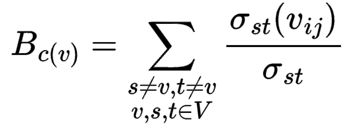 Although centrality captures how frequently a course appears on any long path in the curriculum, betweenness centrality focuses specifically on a course's role in connecting other courses via shortest paths. It quantifies how often a course serves as a bridge between two different courses (s and t) in the shortest possible sequence. Formally, it is expressed as follows.