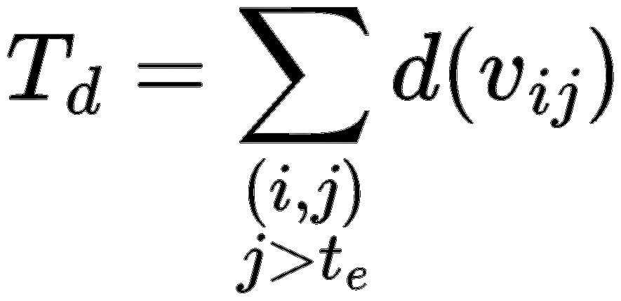 To further develop the conceptualization of curricular complexity, efforts have been made to introduce metrics that are sensitive to specific student populations. The most pronounced addition is the integration of transfer-specific metrics to provide deeper insights into the obstacles these students encounter (Reeping & Grote, 2022). Although curricular complexity metrics have been effectively used to analyze graduation rates for First-Time-In-College (FTIC) students (Heileman et al., 2018; Nash et al., 2021), they do not necessarily capture the unique challenges faced by transfer students (Grote et al., 2021). Transfer students encounter additional complexities, including credit loss, course timing discrepancies, and structural misalignments between sending and receiving institutions. Researchers have sought to address these gaps by enhancing existing structural complexity metrics (Reeping et al., 2021). One transfer-specific metric is the transfer delay factor (Td), which captures rigid prerequisite structures that affect a transfer student's time to graduation by extending it due to how courses are arranged. Unlike other measures that do not incorporate graduation timing, the transfer delay factor penalizes sequencing that extends a student's expected time to graduation. The transfer delay factor is defined as the sum of delay factors for all courses that a student must complete beyond their expected time to degree (te):
