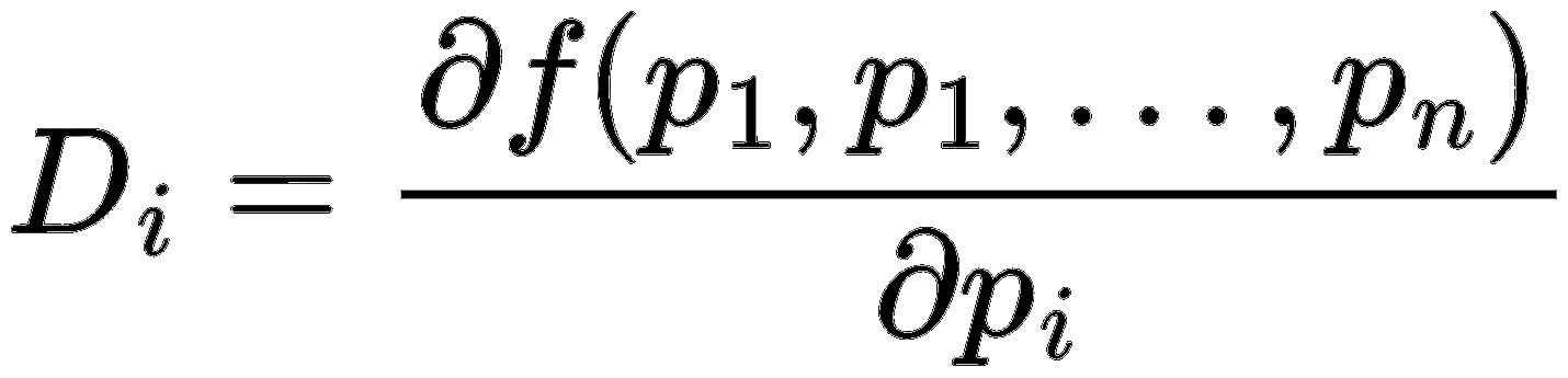 The use of pass rates to measure instructional complexity primarily serves to simulate student progression through a given program. For example, Molontay et al. (2020) used discrete-event simulation to model the expected graduation time based on both the curriculum's topological structure and course-level completion probabilities. The model uses the partial derivative of a function f(p1, p2, …, pn) representing the expected graduation time when one of the pass rates is changed, pi.