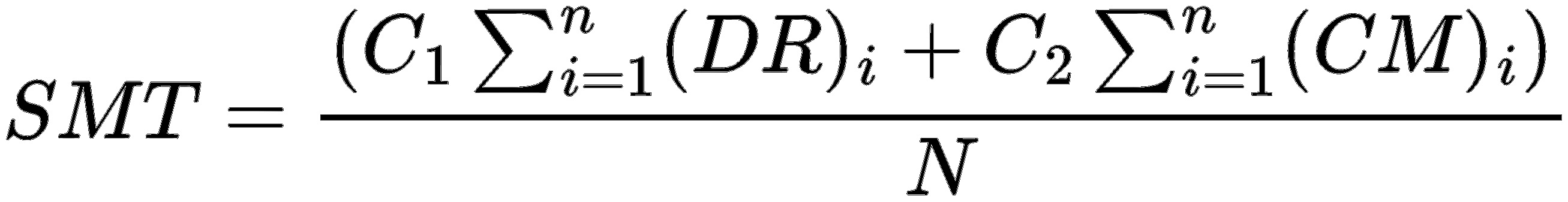 where drop rate (DR) denotes the number of students who withdrew from the program at the end of the ith term; changed major (CM) represents the number of students who changed their major at the end of the ith term (assuming into the program); C1 and C2 are weighting coefficients; N is the total number of students who withdrew from the program or changed majors (however, it seems more likely it should refer to the total number of enrolled students if both DR and CM are students leaving). The term, n, is the number of terms under analysis (typically 8). The authors suggest that the weights C1 and C2 are determined based on empirical observations of how each factor contributes to student turbulence, with typical values set as C1 = 1 and C2 = 0.5 in prior applications. For example, if we consider the SMT using a collection of programs, if a cohort of 100 engineering students has 50 students leaving the engineering programs (DR) and 10 major changes among them (CM) over three terms, with C1 = 1 and C2 = 0.5, their SMT would be (1 × 50 + 0.5 × 10) /100 = 0.55, suggesting moderate turbulence in student progression. Using the proposed definition provided in (Basavaraj, 2020), we find that SMT would be (1 × 50 + 0.5 × 10) /60 = 0.92 - a significantly higher turbulence value. While no strict thresholds are defined, lower SMT values typically indicate smoother, more stable progress toward degree completion. In contrast, higher values reflect increased academic instability, which can delay graduation. For example, if Program A has a higher SMT than Program B, it suggests that students in Program A experience more disruptions and are progressing less efficiently toward their degrees (Basavaraj, 2020).