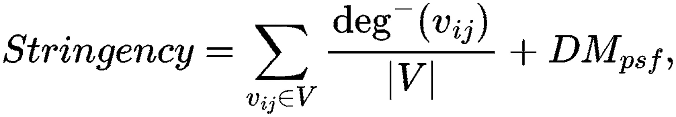 Curriculum stringency combines the structural features of the network with instructional features, such as student performance on non-course-related exams. Though for many programs, such features do not necessarily apply, so DMpsf = 0, and the metric becomes entirely structural.